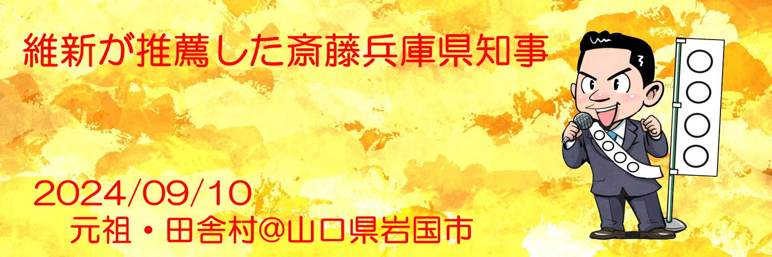 【維新が推薦した斎藤兵庫県知事】連日テレビニュースを賑わして、日本中の時間と電力をムダにさせている斎藤兵庫県知事。日本維新の会の吉村共同代表がお出ましになったが、日本維新の会の本質が表面化したように見える。