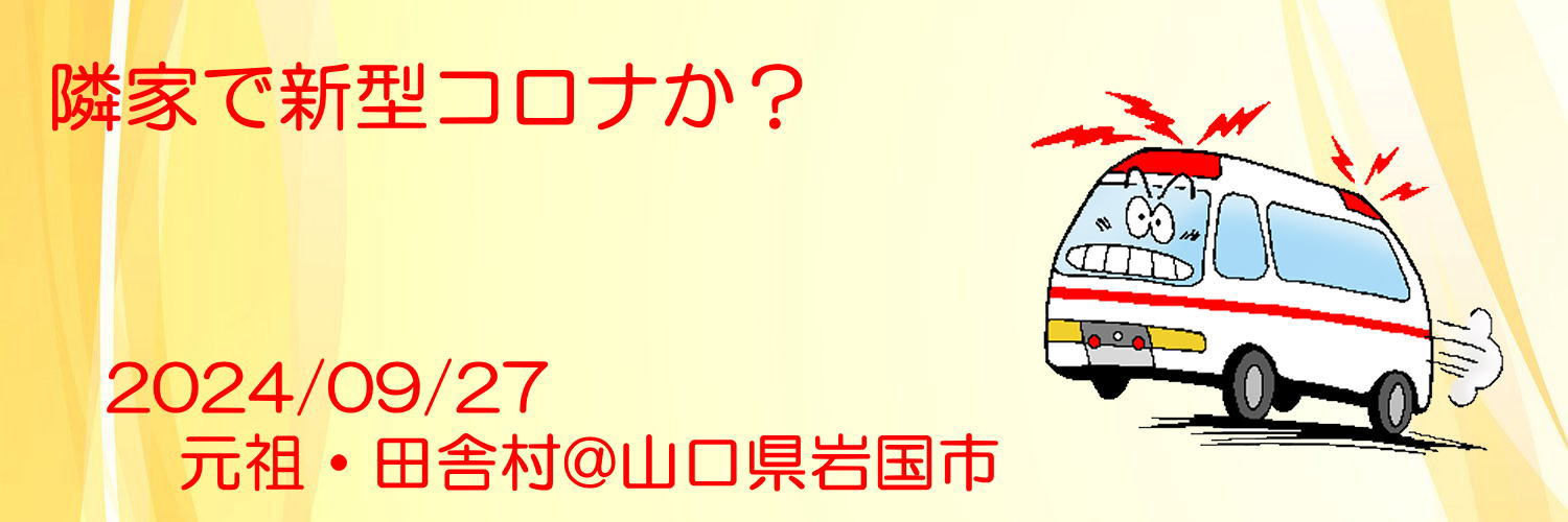 【隣家で新型コロナか?】今朝7時前に救急車が隣家へ。救急隊員の話から「新型コロナ」らしいとのこと。隣家の年寄りは「新型コロナのワクチン接種」はしないことを自慢していた。当市では「新型コロナ」が増加中! ワクチン、マスク、手洗い・・・自己防衛対策を!