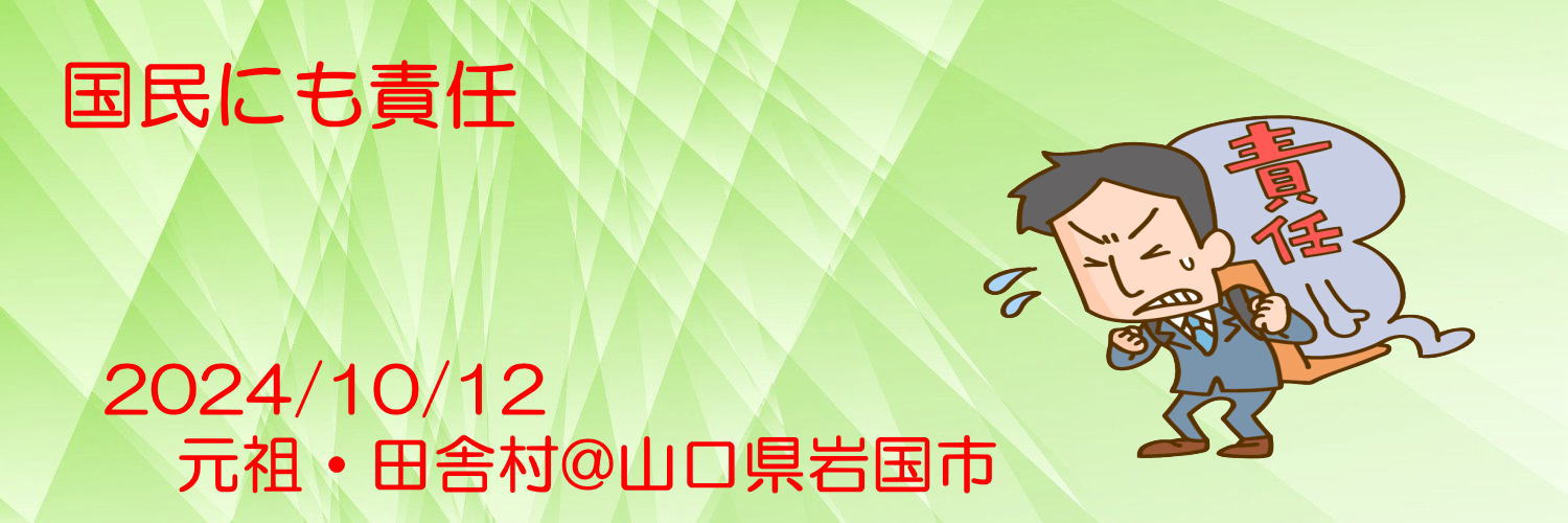 【国民にも責任】何時までも解決せずに延々と続く自民党の裏金問題、統一教会問題、桜を見る会問題。関係した議員の責任は勿論だが、こんなデタラメな議員を選出した国民にも多大な責任がある。今回の選挙こそは、投票箱へ一票を入れる前に、もう一度見直して、責任を果たそう。