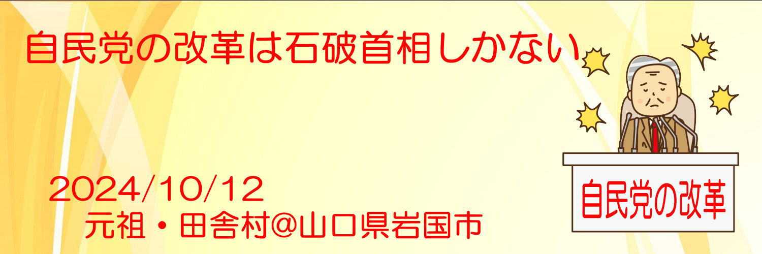 【自民党の改革は石破首相しかない】準備していた小泉の鎧兜を着せられてヨチヨチ歩きの石破首相。他の自民党員では改革は不可能。次の衆院選では自民党に勝利してもらい、石破首相に自民党の大掃除をしてもらいたい。野党への政権交代は望み薄。頼むぞ石破首相!