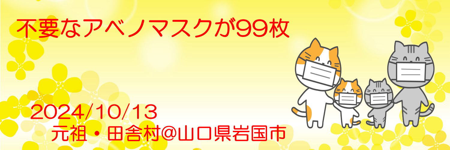 【アベノマスクの在庫が99枚】政府の不良在庫一掃に協力するために送ってもらった【アベノマスク100枚】。1枚だけ開封してサンプルにしたが、近所の子供にも嫌われてしまって、99枚が残っている。大人には小さ過ぎて使い物にならないし、雑巾にするにも小さい。使い道を募集中。