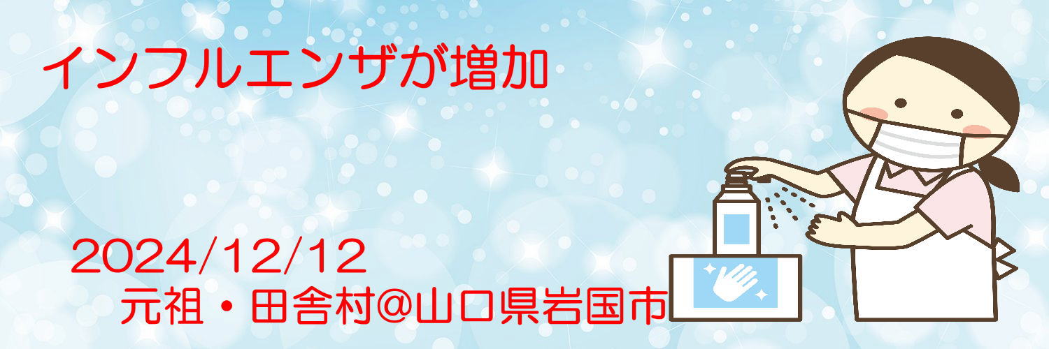 【インフルエンザが増加】山口県はインフルエンザと新型コロナが増加傾向にある。両方ともワクチン接種は済ませているものの、正月旅行に行かれなくならないように、予防の基本「マスク、手洗い、うがい」を怠らないようにしなければならない。