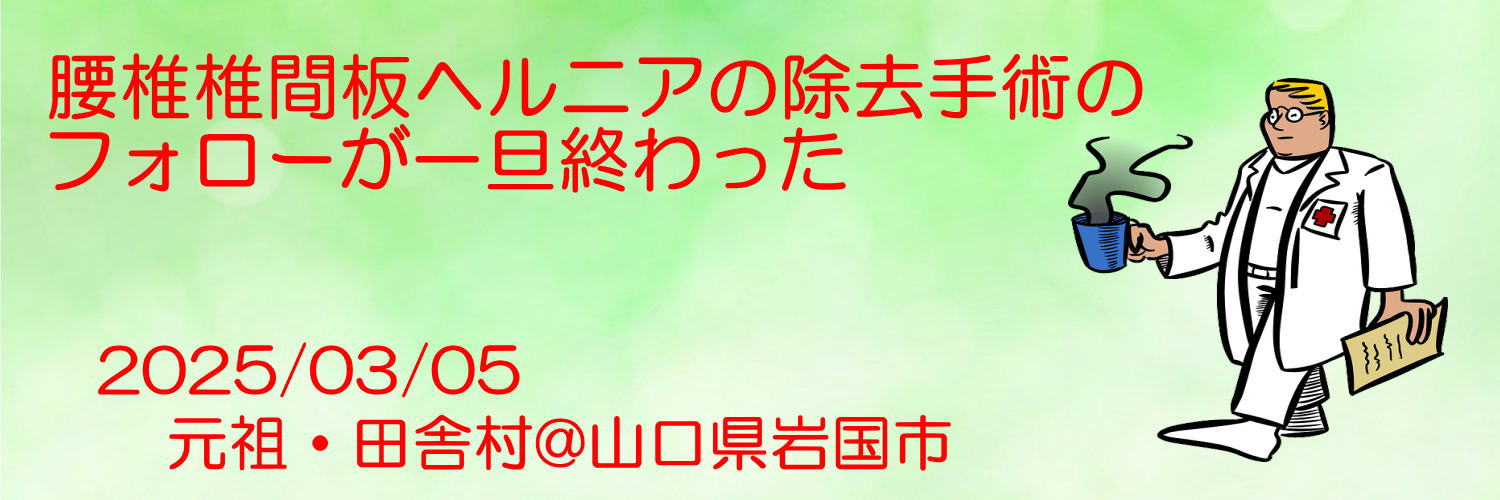 2025/03/05 腰椎椎間板ヘルニアの除去手術のフォローが一旦終わった