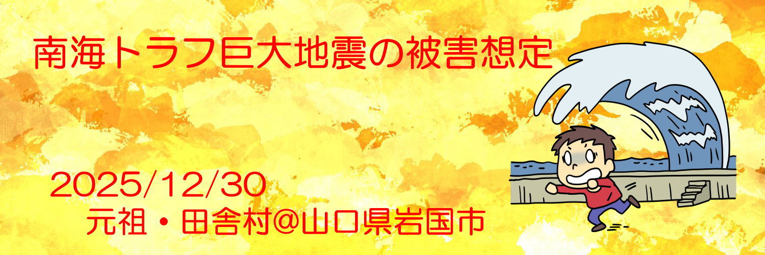 【南海トラフ巨大地震の被害想定】山口県の被害想定が発表され、津波での死者は岩国市では66人と想定。我が家は周囲より少し高くなっているので津波には安心しているが、石垣が崩れて家が転落死ないかと心配している。