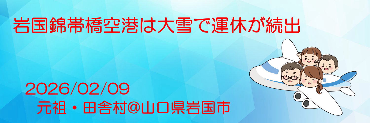 【岩国錦帯橋空港は大雪で運休が続出】8日の午後と9日の午前の羽田便と沖縄便は運休ですね。運行記録によると、8日午後の那覇→岩国便は、松山空港へ行先を変更したが着陸できず、伊丹空港へ行ったようです。