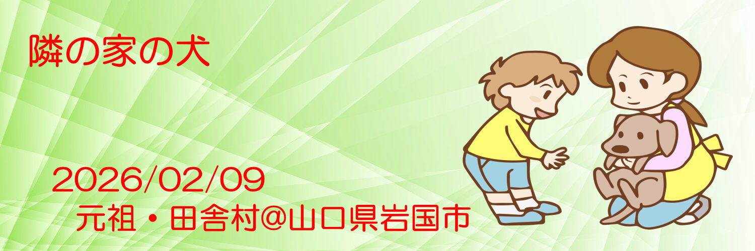 【隣の家の犬】隣の家は米軍岩国基地に勤務している米国防省の防弾チョッキを着たSPの一家。犬はゴールデンリトリバーの若い♀で、買い物に出かける時と帰ってきた時には、塀の隙間から顔を見せてくれる。知らない人には吠えてくれるので、留守番に役立っている。