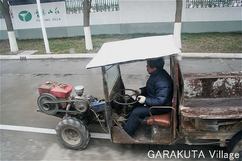 エンジン丸裸の四輪車。