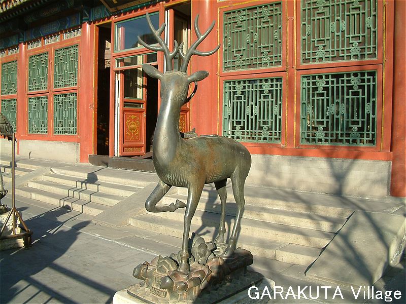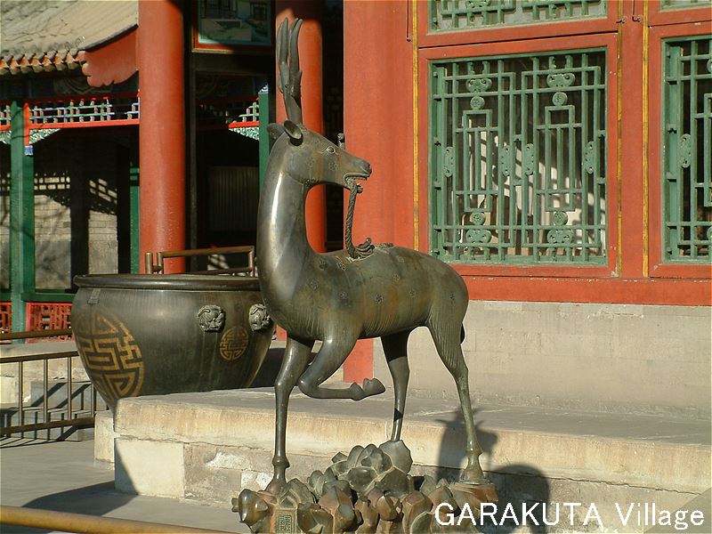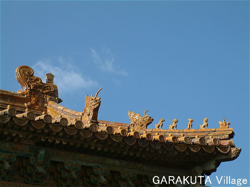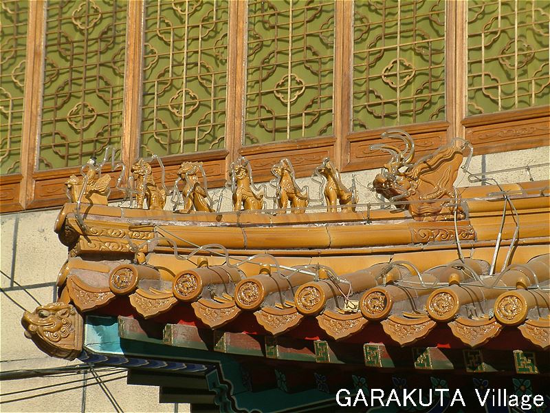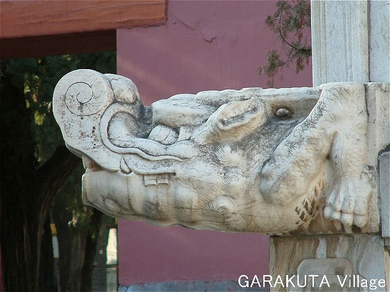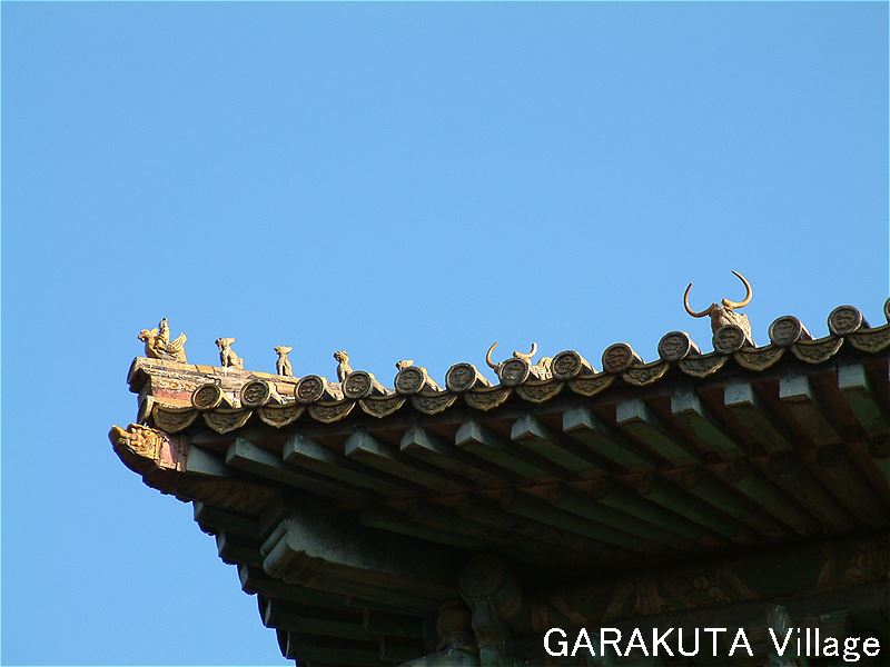明の十三陵(定陵)、翡翠の専門店の屋根に棲みついている怪しい動物です。