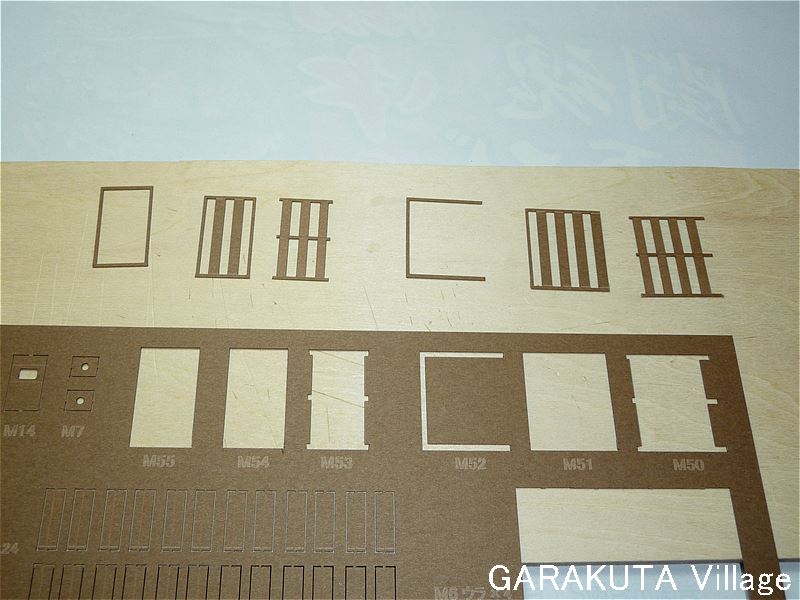 方紙⑬から板塀M50、M51、M52と、板塀M53、M54、M55を、方紙⑩から補強B54を切り抜きました。