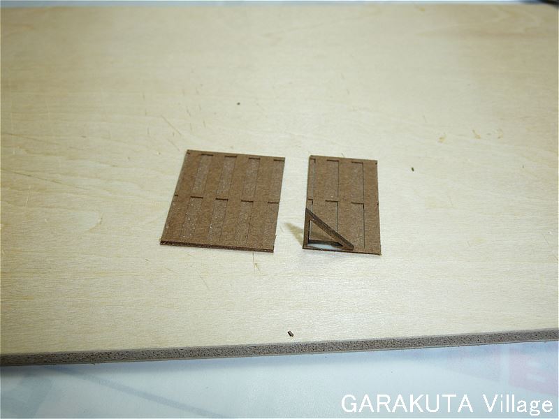板塀M50、M51、M52の3枚を重ねて貼り合せました。また、板塀M53、M54、M55を重ねて貼り合せて、2枚の板塀を作りました。