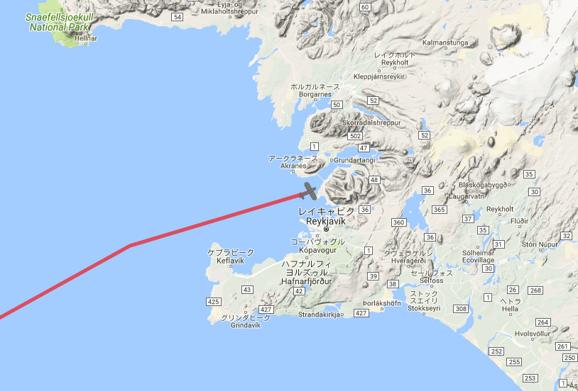 1時間後くらいには Reykjavik に到着でしょうか?