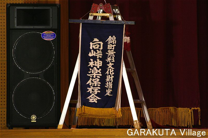 我が家から歩いて約30分くらいのところの小学校の体育館で夕方から5演目。向峠神楽保存会の神楽奉納へ行ってきました。