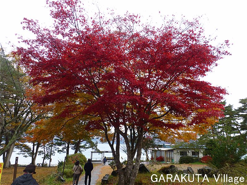 なお、バスが田沢湖共栄パレスの駐車場へ着く手前で、蕩けるような真っ赤な紅葉が見えたのですが座席の反対側。出発する時に写真を撮ったのですが、バスの動きが速く、ブレてしまいました。
