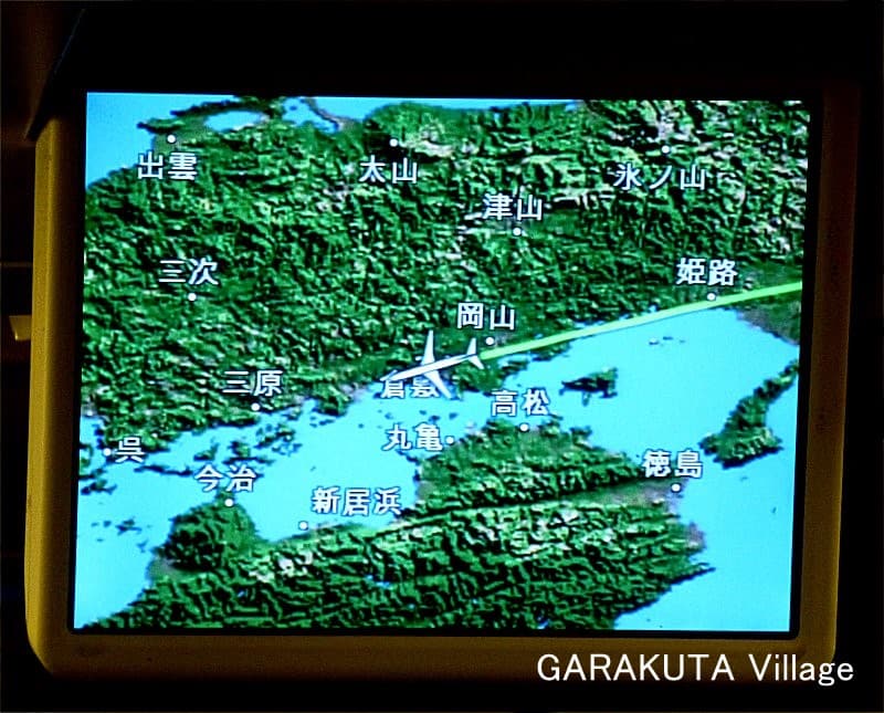 空からの写真が有りませんので、羽田空港から岩国錦帯橋空港までの飛行ルートをFlightradar24.com – Live flight tracker!から借用しました。参考にして下さい。