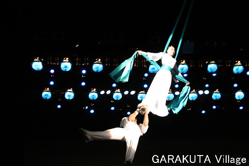 席は中央の前から2列目。頭上を通り過ぎるので、若い美女の団員さんが落ちはしないかとハラハラしました。